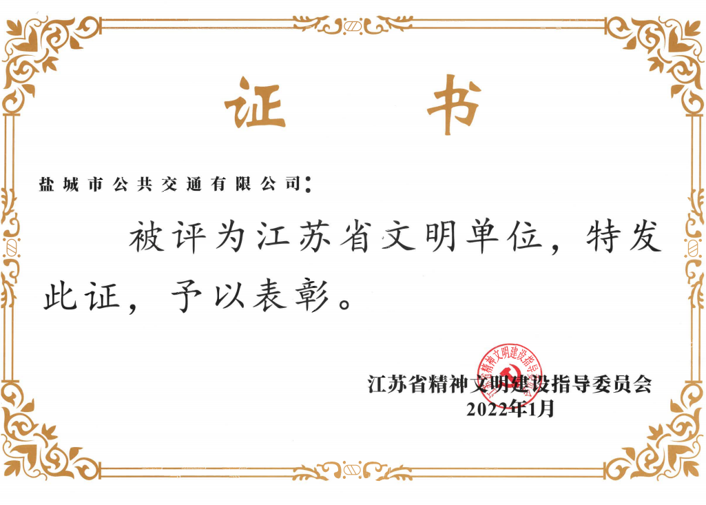 - 2022年4月公司被授予2021年度鹽城市文明創(chuàng)建工作先進(jìn)集體榮譽稱號